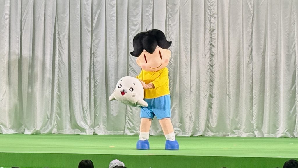そして上原さんが「アシベく〜ん!ゴマちゃ〜ん!」と名前を呼ぶと、ステージにアシベとゴマちゃんが元気に登場。